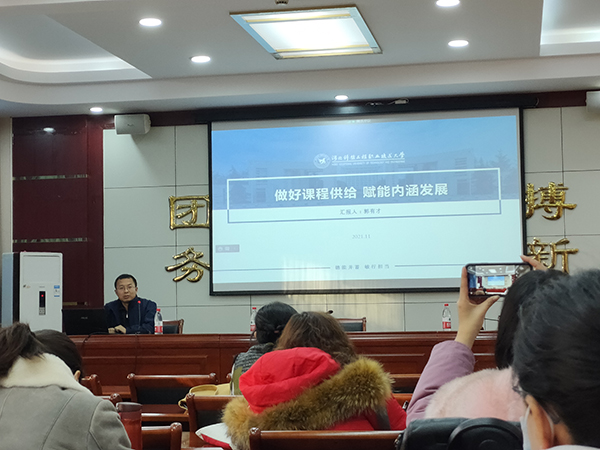 为加强beat365精品课程建设,做好2021年省级精品在线开放课程申报验收工作,11月25日下午,学校邀请河北科技工程职业技术大学教务处教研科郭有才科长到校举办专题培训,百余名教师通过线上和线下两种方式参加。