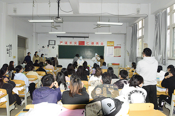 出发前,护理系和药学系组织人员对师生进行了强化培训,讲述了核酸采集的技术要领和注意事项以及上次参加核酸采集的工作经验。随后,在系领导和辅导员的带领下分赴信都区泉西街道办事处、南大郭镇、南石门镇共计136个点位,与其他医护人员一起,从晚7时至次日凌晨0时15分,完成了13.1万余份核酸采集工作。