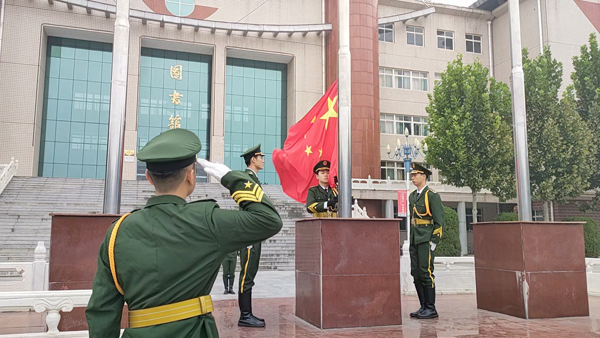 上午8时整,国旗护卫队队员迈着矫健整齐的步伐,护卫着五星红旗走向升旗台。随着雄壮激昂的国歌响起,升旗手振臂一挥,鲜艳的五星红旗迎风招展,冉冉升起。全体师生肃然而立,一同面向国旗行注目礼,向国旗致以最崇高的敬意,向祖国母亲献上最美好的祝福。