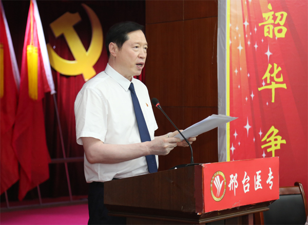 此次大会,既是一次纪念党的生日的庆祝大会,也是一次弘扬先进的表彰大会,更是一次向学校宏伟目标奋勇迈进的动员大会,让我们更加紧密地团结在以习近平同志为核心的党中央周围,高举习近平新时代中国特色社会主义思想伟大旗帜,坚定信念、践行宗旨、拼搏奉献,创造更加辉煌的新业绩新成就,书写邢台医专“一校三院一中心”的美好华章!