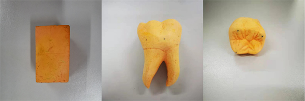 比赛共历时3个小时,内容为用尺子、铅笔和刻刀将56mm*32mm*34mm的石膏块雕刻成3倍石膏体右下颌第一磨牙。同学们拿到石膏块后,运用专业理论知识和雕刻技巧,熟练地进行测量、划线、粗雕、精修,一气呵成地雕刻出栩栩如生的3倍石膏牙体。评委们现场对参赛作品进行评比,最终20级普口4班郑雄康同学摘得桂冠,25名同学分别夺得了一二三等奖。口腔医学系主任马涛与清河万长华口腔医院院长万长华、上海沪鸽医疗器械有限公司经理刘胡荣、邢台市桥东区佳鑫医疗器械经营部经理张建平共同为获奖同学颁奖。