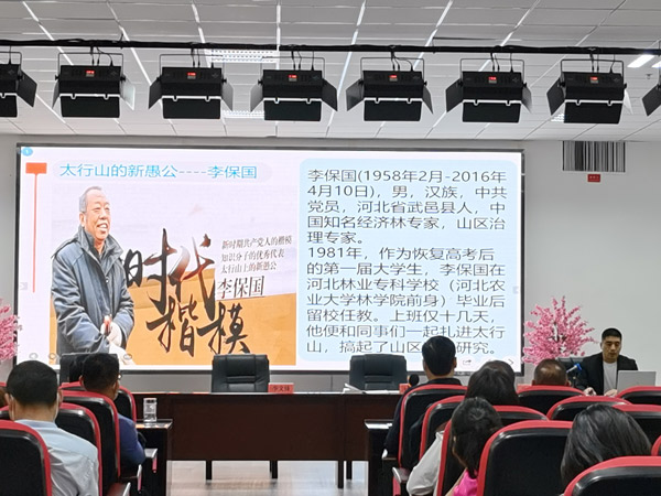 本着不忘初心、牢记使命的宗旨,徐鹤老师以《英雄的摇篮---前南峪抗日军政大学》为题给大家进行了精彩分享,讲述了在抗日年间,党中央和太行山英雄儿女们克服种种困难、付出巨大牺牲,在邢台前南峪建立、发展壮大抗日军政大学的伟大历史。刘少斌老师以《太行山的新愚公--李保国》为题进行了分享,围绕党中央自十八大以来全面脱贫攻坚,实现伟大中国梦的历史构想,结合太行山革命老区人民脱贫纪实,讲述了浆水镇、内丘县岗底村、临城县凤凰岭等地农民在中国优秀共产党员、时代楷模“愚公李保国”的带领导下,发扬革命老区人民奋勇争先,自力更生逐渐摆脱贫困的感人故事。
