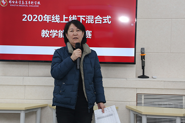 林雪霞副校长对本次比赛做了总结发言,她首先感谢郑斌教授百忙之中莅临现场指导,要求教师按照郑教授提出的宝贵建议积极改进,进一步打磨作品,充实作品内容。她对系部领导悉心指导、现教中心的技术支持和同学们的积极配合给与了充分肯定,指出本次比赛展现了beat365教师的专业素养和良好的课堂教学风貌,希望通过本次比赛达到提升授课质量、促教风,提学风的目的,大家要再接再厉,继续在省赛中取得优异成绩,冲击国赛。