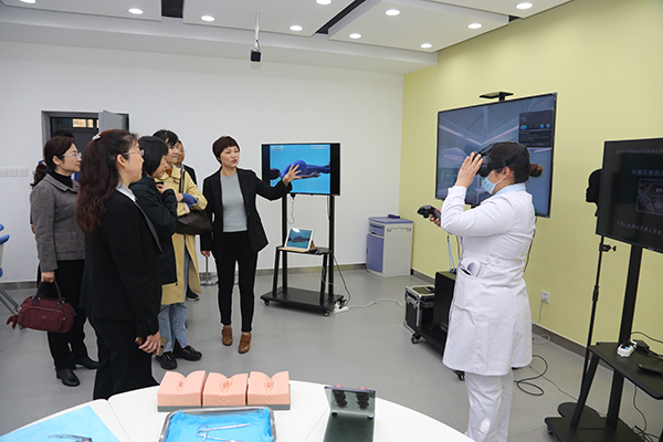 汇报会之后,调研组分五组对学校分管教学副校长、教务处处长、临床医学、口腔医学、护理专业以及其他专业相关人员进行了访谈,实地参观了校本部和皇寺校区教学设施和实验实训室。调研组还参观了学校第二附属医院,听取了医院关于实践教学方面的汇报,访谈了分管教学副院长和学生实习管理部门负责人。