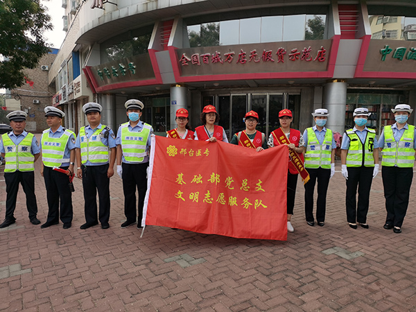 7月22日,七里河新区交警大队长赵项清给学校发来信息,对beat365文明交通志愿劝导服务工作予以充分肯定,指出:医专同志们在以前的志愿者服务工作中为我市文明城市的创建做出了很大贡献。7月22日,邢台医专基础医学部在第一党支部书记王晓凌、副书记李娜的组织带领下,早、晚高峰秩序良好,受到了上级有关领导的表扬。在此向今天参加交通管理的8名同志表示感谢!辛苦了!