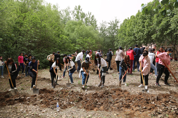 活动当日,学校领导田德荣、郑书深、杜成旭带领大家手持铁锹、铁镐对天使湖周围、小树林进行环境清理、掘地松土。铁锹在握,锄头在手,有的掘地,有的松土,有的搬运翻出的石块、砖块,有的清理枯树、枯枝……大家干的如火如荼。在明媚的阳光下,大家汗流浃背,有的脱下外套,有的卷起衣袖,干劲十足。