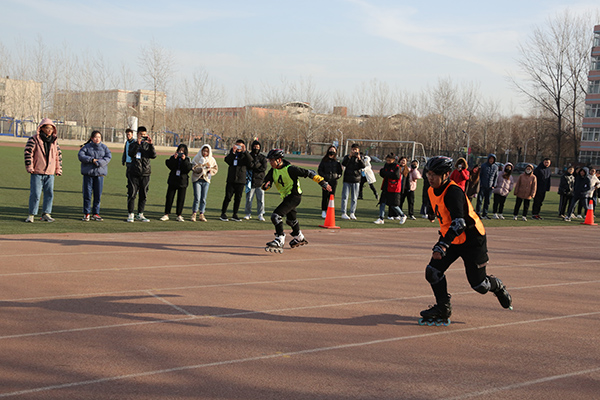 此次冰雪运动会的主题是“师生共建、冰雪迎奥”,设立4×100米轮滑接力、400米个人速滑、20桩个人绕桩、趣味搬冰块等4个比赛项目,30名教职工和67名学生同场竞技,共享冰雪激情。比赛中,运动员们个个身姿矫健,用速度和激情点燃了冬日热情,他们团结协作,配合默契,展现了高超的轮滑技术与顽强拼搏的精神。经过激烈角逐,药学系代表队获得4×100米轮滑接力赛第一名,临床医学系张世宁同学获得400米个人速滑第一名,中医系杨金奇同学获得20米个人绕桩第一名,临床医学系代表队获得趣味搬冰块比赛第一名。