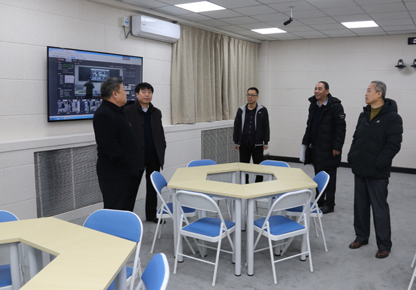 12月12日上午,学校党委副书记校长郑书深,党委副书记李建广,党委委员副校长李朝鹏到现代教育技术管理中心四层视察智慧教室建设情况。