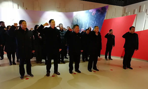 在廉政教育现场,大家聚精会神地聆听讲解,驻足观看了违法犯罪人员的现身说法和忏悔书,仔细观看每块展板和每段警示语,一个个生动鲜活的案例,一段段发自内心的忏悔,再次提醒大家信念动摇是蜕化变质的根本原因,人生路上要把好“总开关”,每名党员干部都要始终做到常修为政之德,常思贪欲之害,常怀律己之心,做到“知敬畏,存戒惧,守底线”,慎独慎初慎微,警钟长鸣。最后,全体党员领导干部在学校纪委书记赵建文同志的带领下,重温了入党誓词,铭记党的初心与使命。