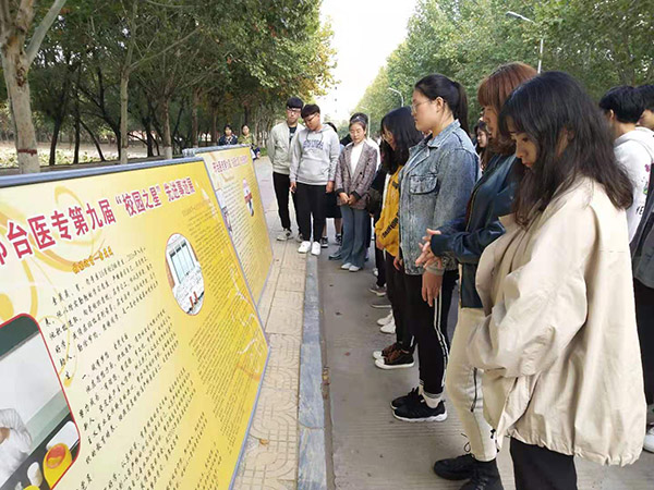 为引导学生自觉培育和践行社会主义核心价值观,加强校园文明建设,10月15日至19日,校团委社会实践部在天使路举办了为期一周的第九届“校园之星”事迹展。