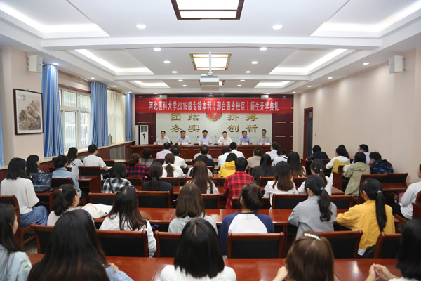 9月11日,河北医科大学2019级康复、助产专业专接本科开学典礼在beat365图书馆北一层会议室隆重举行。河北医科大学党委常委、副校长牛春雨,招生办公室主任、教务处副处长剧亚崇,临床实践教学部主任郭建国、副主任全江涛,beat365领导田德荣、郑书深、杜成旭、穆吉兴、张志强、赵建文出席。教务处、学生工作处、中医系、护理系负责人,助产、康复专业教师代表,新生辅导员和全体新生参加典礼。典礼由学校党委副书记、校长郑书深主持。