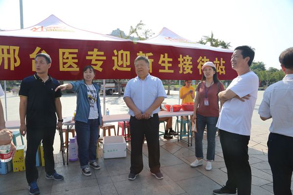 学校领导高度重视此次迎新工作,一早就在相关部门负责人的陪同下来到校本部广场迎新现场,指导各部门、各系迎新工作。随后,学校领导又驱车来到皇寺校区护理系新生报到处,详细了解新生报到情况,叮嘱各有关部门一定要高度重视、认真工作。之后,学校领导还走访慰问了在邢台火车站、邢台东站接站处迎新的师生们。