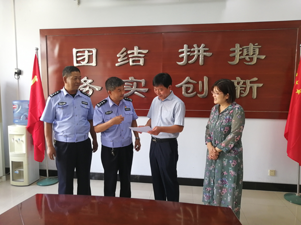 9月9日,七里河新区大队中队长赵项青、副中队长杨社国等一行三人专门到校送来一封表扬信,对学校在金华岗开展的文明交通志愿服务给予了高度评价。