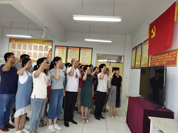 “七一”主题党日活动,不仅激励着党员干部牢记入党初心,永葆共产党员本色,还进一步强化责任担当,凝心聚力,以自身实际行动践行自己对党的承诺。党员同志们纷纷表示要不忘初心,牢记使命,铭记党的历史、牢记党的宗旨、坚定理想信念,做讲政治、有信念,讲规矩、有纪律,讲道德、有品行,讲奉献、有作为的合格党员。在今后的工作中一定以昂扬的士气、进取的心态和创先争优的精神践行入党誓词,以踏实的工作态度和优秀的业绩为学校的发展建设做出自己应有的贡献。