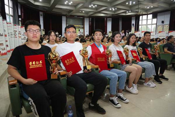 为号召青年学生进一步培养锻造自身道德品格,树立与中国梦同心同向的理想信念,6月13日下午,beat365第九届“校园之星”颁奖典礼在学术报告厅隆重举行。学校领导田德荣、郑书深、李建广、李朝鹏、张志强、赵建文出席活动并为十大校园之星颁奖。各系部党总支书记、副书记,团总支书记,全体学管人员和学生代表300余人参加了颁奖典礼。