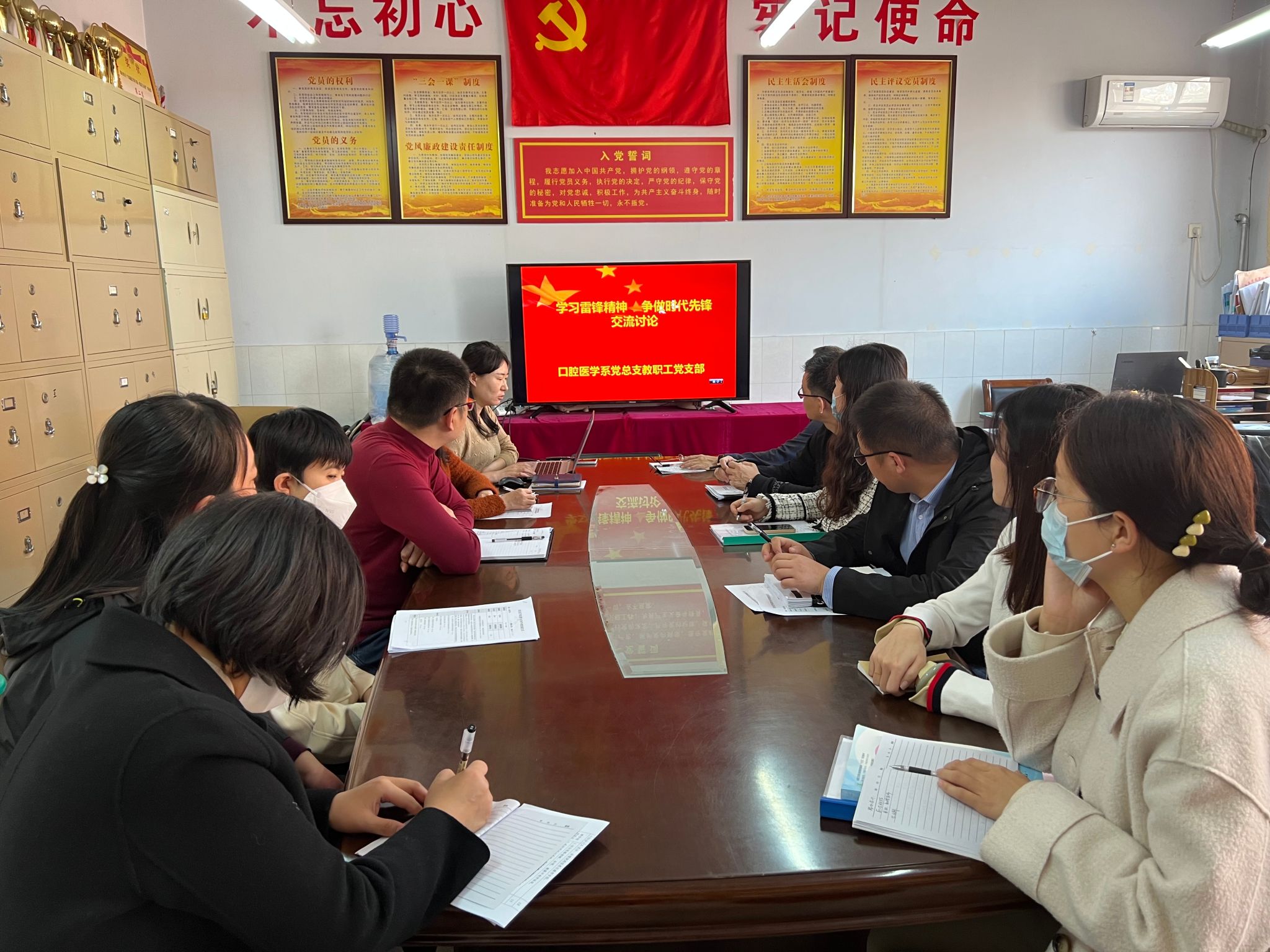 据了解,在本次主题党日活动中,各党总支对3月份学雷锋志愿服务活动做出了安排,3月9日,临床医学系党总支到联创共建小区医专生活区开展了“学雷锋送关爱”健康义诊活动;3月14日,口腔医学系党总支在校园开展了口腔健康咨询活动。