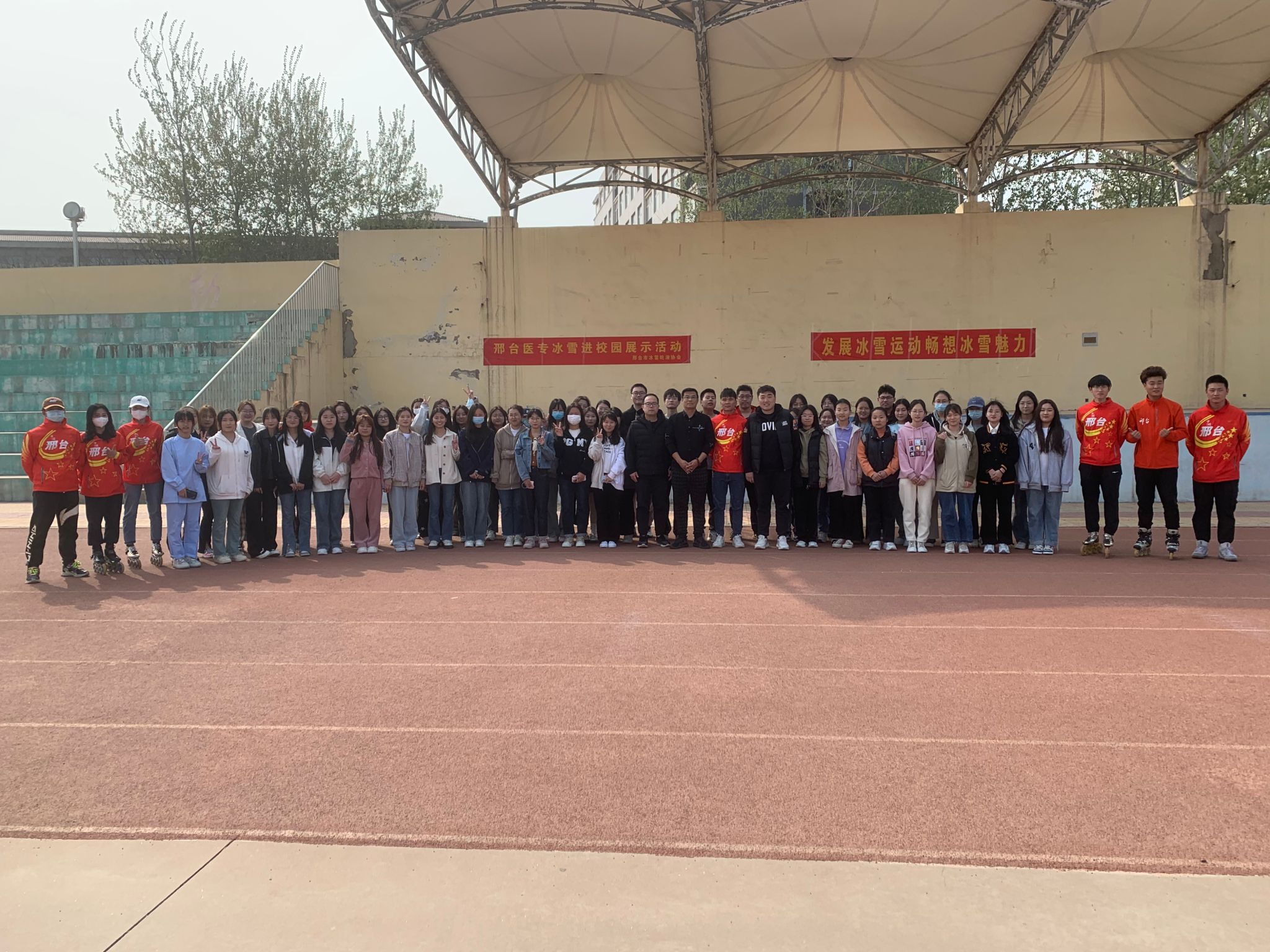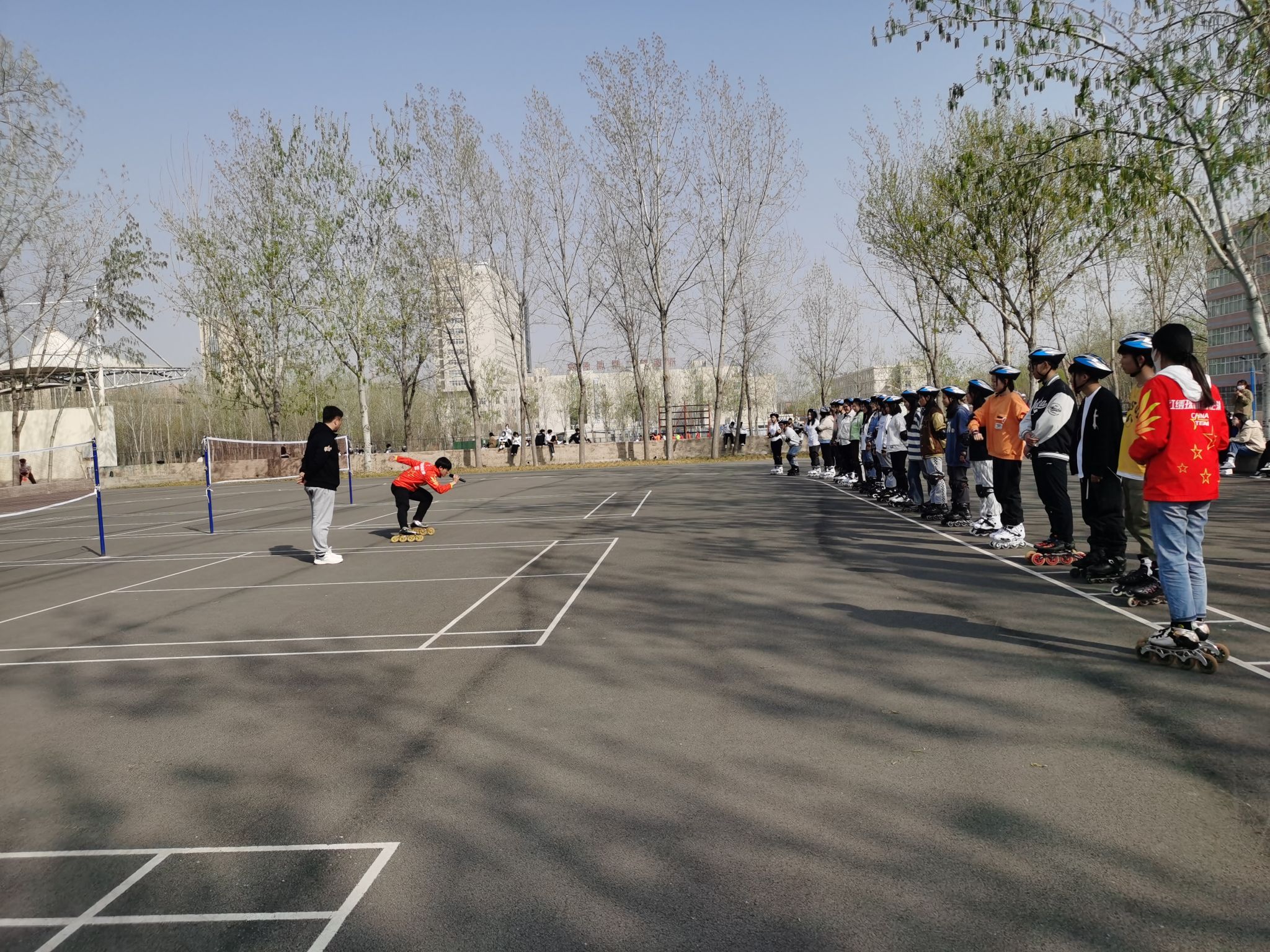 活动中,邢台市体育局轮滑协会国家一级教练员陈亮亮、2022年北京冬奥会高山滑雪NTO彭小刚、邢台市轮滑队主教练张晓丽等专业人士进行了速度轮滑和自由式轮滑技能展示及现场指导教学。技能展示中教练员的“茶壶”、“原地旋转36圈”等精彩动作层次不穷,同学们热情高涨,对教练员的高超技能由衷佩服,掌声不断。在教练们的指导下,滑冰爱好者们稳健、流畅的滑行,不时做出高难度的动作,矫健的身影成为校园里的一道靓丽风景。他们尽情畅滑,享受着轮滑带来的速度与激情,越来越多的同学被吸引过来亲身体验,大家尽享冰雪运动带来的快乐。