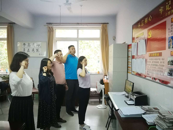 口腔医学系党总支卢青和闫朋朋2名同志为本月过政治生日的党员。卢青和大家一起面对党旗重温入党誓词,回顾自己入党以来的历练与成长,卢青说:政治生日是党给的,是党赋予了自己另一种形式的生命,纪念它是对党的信仰和忠诚,要时刻牢记入党初心和誓言。闫朋朋远在外地进修,在收到了支部送出的电子政治生日贺卡后,他非常感动,说道:政治生日代表着“对党的初心”,这张特殊的生日贺卡提醒自己要牢记党员身份和使命。大家纷纷给两位同志送上自己的祝福,希望他们能牢记党的宗旨、自觉遵守党的章程……