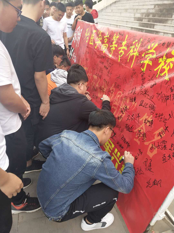 活动中,同学们纷纷郑重签下自己的名字,表示会响应国家号召,积极应征入伍,自觉投身国防建设,为实现中国梦、强军梦奉献青春和力量。