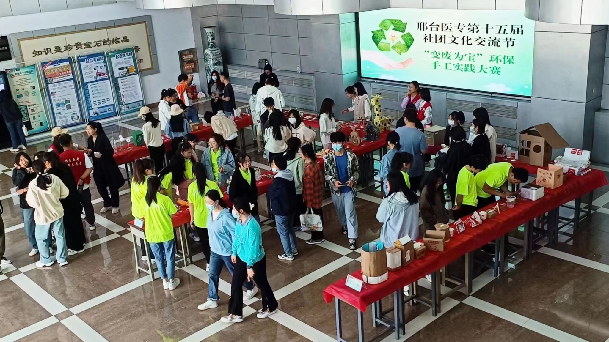 近日,beat365青年志愿者协会举办了以“变废为宝”为主题的环保手工实践比赛,共收集手工作品102件。4月16日,比赛作品在图书馆大厅进行了展示,其中,饮料瓶制作的笔筒和花瓶、废纸盒制作的储物箱和垃圾桶……各种废弃物品经同学们“魔术之手”变得光彩熠熠、焕然一新,活动获得了众多同学的围观点赞。