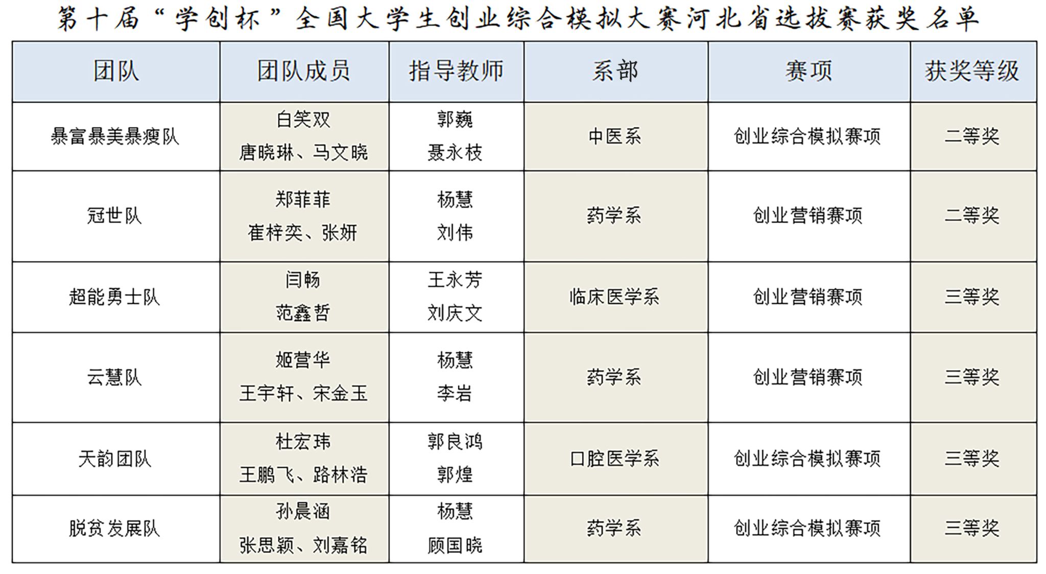 近日,第十届“学创杯”全国大学生创业综合模拟大赛河北省选拔赛在河北科技大学落下帷幕。beat3656支参赛团队斩获二等奖2个、三等奖4个。