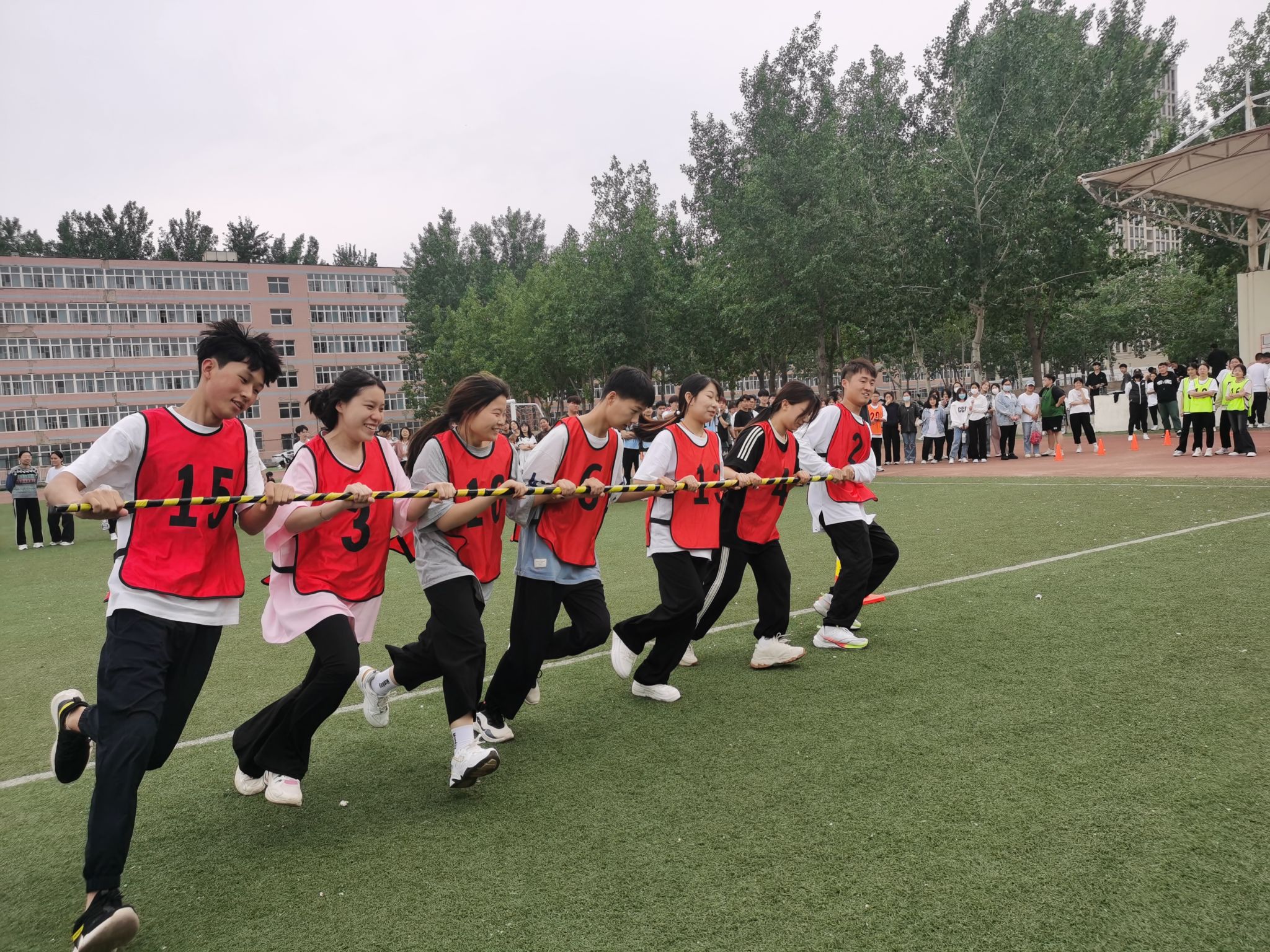 本次球类运动会除开展传统的篮球、足球、排球、乒乓球、羽毛球等球类比赛之外,还增加了拔河、跳绳、“疯狂八字”“天罗地网”“一圈到底”等多个趣味性项目。赛场上,运动员们团结协作、奋力拼搏,以卓越的技巧、闪电般的速度、持久的耐力一次次创造新的成绩;裁判员们严谨认真、公正执裁,为各项比赛保驾护航;观赛的同学欢呼雀跃、喝彩不断,加油声此起彼伏;整个运动场到处洋溢着生机勃勃、健康向上的气息。