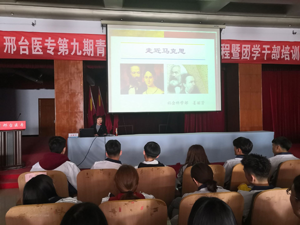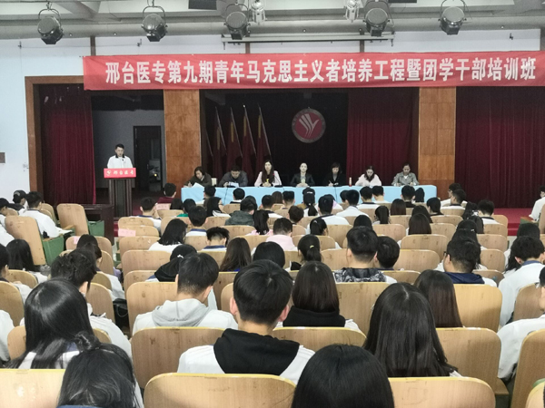 开班仪式由药学系团总支书记杨慧老师主持,口腔医学系团总支书记刘勇老师宣读了《关于举办邢台医专第九期青年马克思主义者培养工程暨团学干部培训班的通知》,详细介绍了日程安排。学员代表、新青年求知学社社长、2017级普临3班尚天星同学在发言中感谢学校给予这样一个学习进步的平台,表示要不断加强学习、提升素质,实现自己的人生价值。