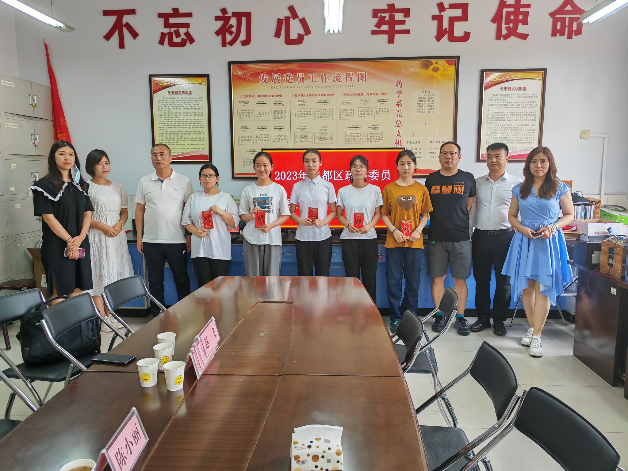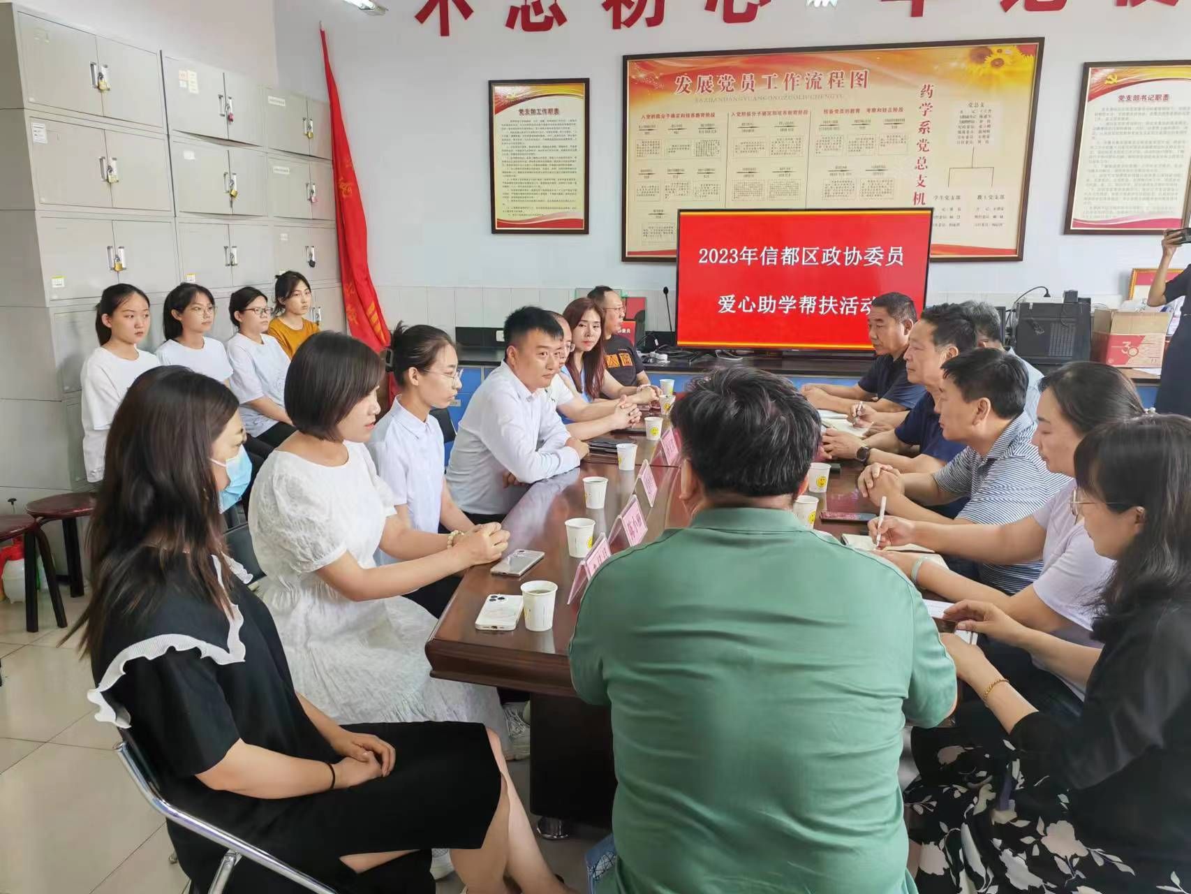 6月25日下午,信都区政协常委孙宏波、委员张志波等企业家一行9人来到beat365药学系和医学技术系,为5名贫困大学生送来助学金和笔记本电脑。学校党委副书记杜成旭、系领导、辅导员参加了活动。