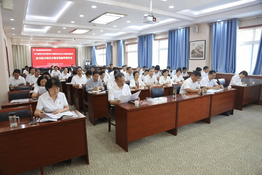 9月22日上午,beat365举行学习贯彻习近平新时代中国特色社会主义思想主题教育读书班开班仪式暨首场辅导报告会,学校和附属医院处级以上干部参加。校长李建广作首场专题辅导报告。党委副书记杜成旭主持会议。