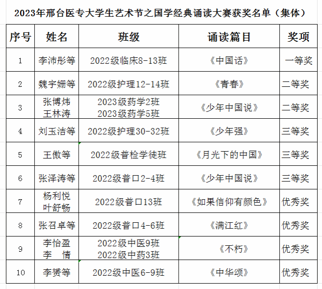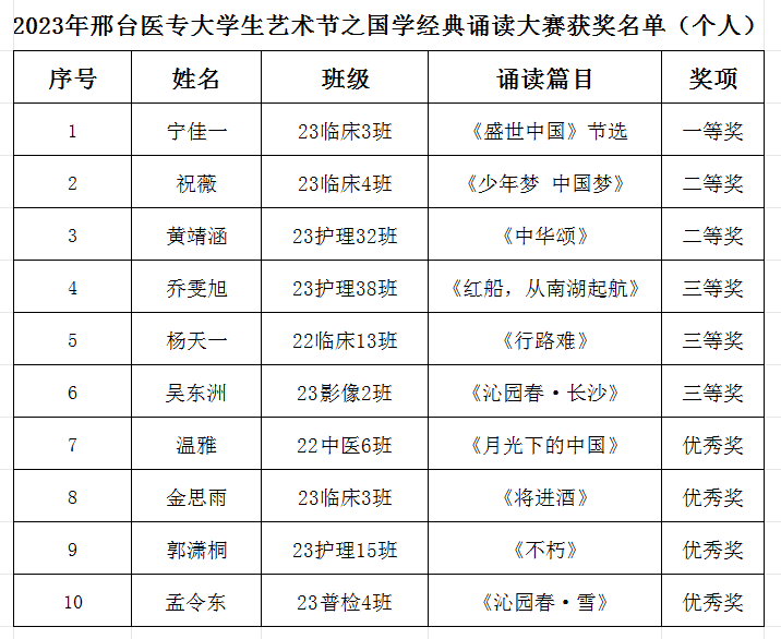 用经典浸润心灵,让阅读丰富人生。此次大赛不仅让同学们在诵读中亲近中华经典,在亲近中热爱中华文化,也展现了医专学子积极向上的精神风貌。
