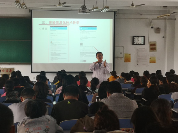 接着,口腔医学系副主任董泽飞以《混合式SPOC课程建设》为题,结合自己几年来SPOC课程的研发经验,从混合式SPOC教学模式、SPOC教学组织过程、体验信息化技术教学、SPOC教学实施体会、成果展示等方面,为大家展现了功能强大、神奇便捷的信息化技术教学手段。整个示范过程,教学思路严谨,课堂教学节奏感强,互动良好,展现出娴熟的教学技能。两位教师精彩的示范教学,各有特色,带领广大教师走入精彩的传统教学与现代化信息技术相融合的全新课堂,引来全场掌声不断。