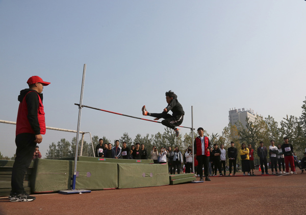 学校党委书记田德荣宣布运动会开幕并鸣枪后,紧张激烈的赛事正式展开。本次运动会共设有20个集体和个人项目,其中学生12项、教师8项,参赛人数达1000余人。在跑道上,发令枪一响,运动员们飞速向前,矫健的身姿在拉拉队的加油声中快速冲过终点。在跳高场地,随着横杆的不断升高,健儿们每一次漂亮的过杆都赢得一阵掌声与喝彩。在铅球场上,身材魁梧的运动员稳稳托着沉重的铅球,转身、挥臂,铅球划过一道优美的曲线远远落下……比赛中,运动员们奋勇争先、努力拼搏、敢于超越,充分展示了beat365师生奋勇拼搏的昂扬斗志和争创一流的精神风貌。播音员不时播出获奖同学的佳绩,各系踊跃向大会投稿;观看的啦啦队更是激情澎湃,助威声震耳欲聋,此起彼伏。