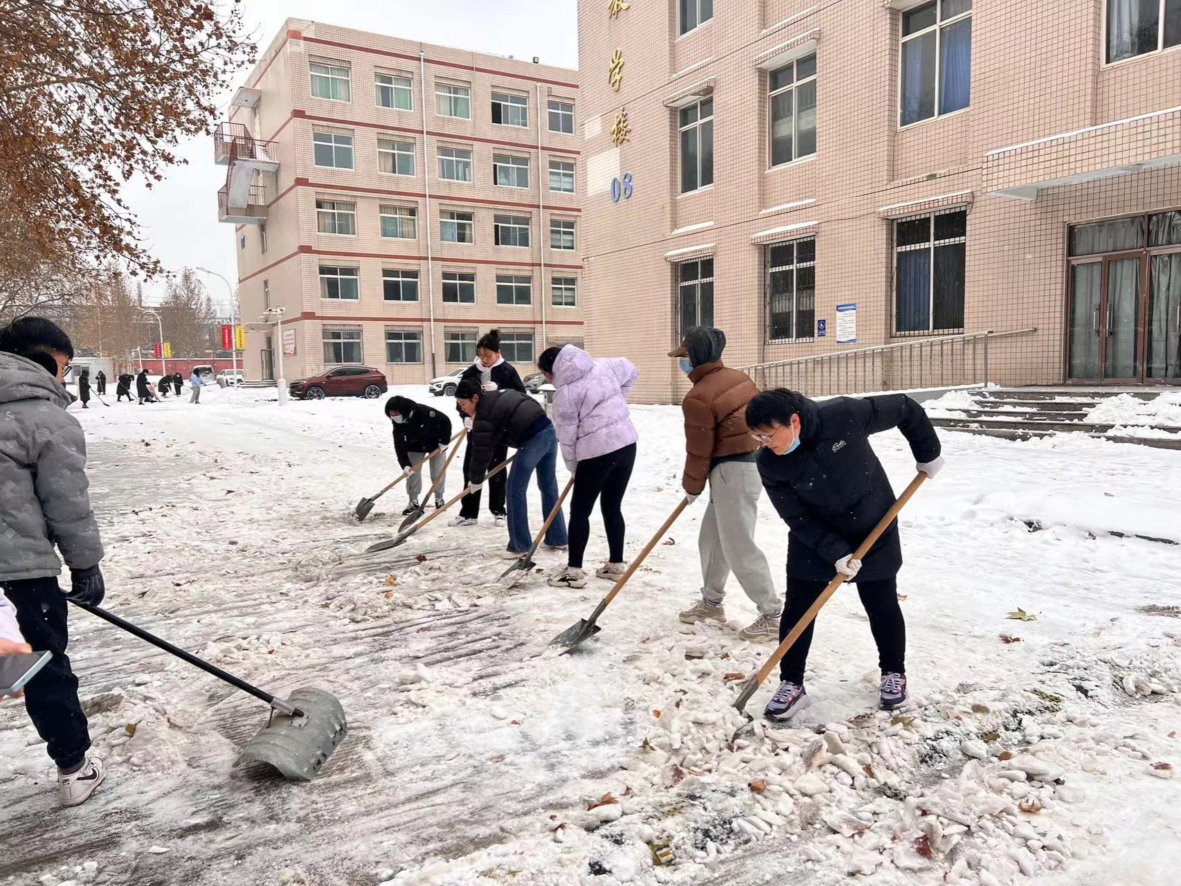 瑞雪兆丰年,校园裹银装。为保障校园内道路顺畅通行和师生安全,12月15日,beat365组织全体行政人员开展清雪除冰活动。