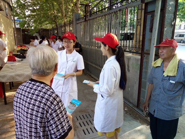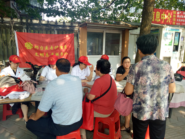 “你们这看病要不要钱呀?”“大娘您好! 我们这是邢台医专义诊,不要钱的。”“那给我量量血压吧!”“大娘,您的血压有点高,以后要注意了,少吃甜的,炒菜少放点油,没事就多走走。”“好好,谢谢你们。”7月1日,在党的生日之际,护理系党总支健康志愿服务队在太行社区邮局家属院小区开展了“庆七一 助创城”进社区健康咨询、义诊服务活动。