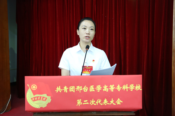 共青团邢台医专团委书记杜庆岩代表共青团邢台医专第一届委员会作了题为“不忘初心 砥砺前行 全面开创beat365共青团工作的新局面”的工作报告。