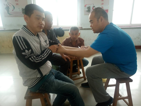 为了巩固教学成果,5月31日,beat365教学团队又组织学员开展了一次“回头看”强化提高活动。在“回头看”活动期间,团队与学员进行了充分交流,每位学员都谈了自己的心得体会,对于beat365教师不仅教会了他们中医按摩、拔罐、刮痧、艾灸、养生等知识技能,还免费赠送经络图、按摩巾、罐具、刮痧用具、艾条等物品表达了深深地感谢,表示今后将积极把所学知识用于实践,既要给自己保健,又要给家人保健,还会教给乡亲们,同时不懂之处还会通过微信、电话向老师们请教,希望老师们继续支持他们。当天,其中一位盲人学员及其父亲分别打电话告知学校,他在沙河一盲人按摩店找到了工作,感谢学校教师既教会了他技能,又从思想上解除了他本人和家长的顾虑,使得他29岁了终于能脱离父母照顾,能自食其力了。