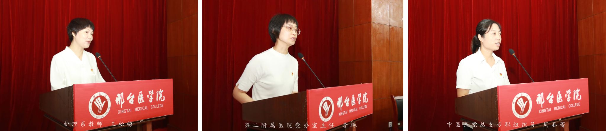 优秀共产党员代表护理系教师王松梅,优秀党务工作者代表第二附属医院党办室主任李琳,先进基层党组织代表中医系党总支专职组织员周春蕾分别作了交流发言,表达了积极为党争光、为党旗添彩,团结带领广大党员立足本职、踏实苦干、奋勇争先,为学校事业发展再立新功的信心和决心。