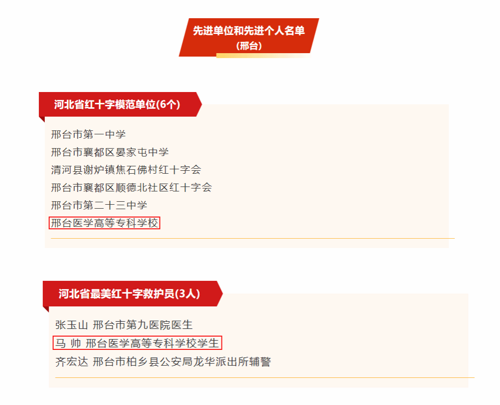 近日,省红十字会公布先进单位和先进个人名单,beat365被授予“河北省红十字模范单位”称号,中医系学生马帅被评为“河北省最美红十字救护员”。