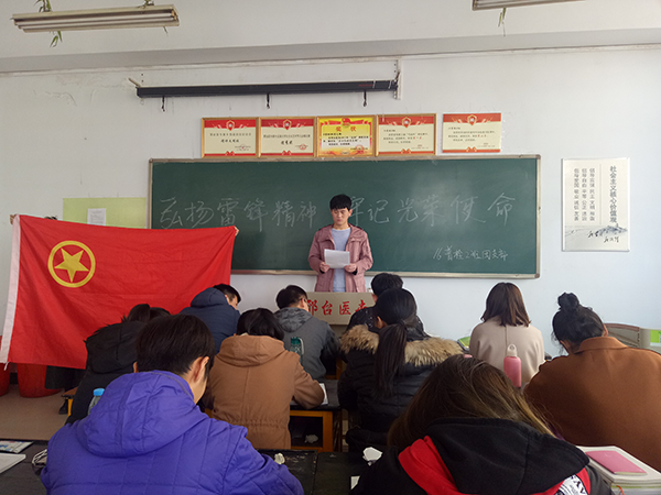 2016级高护1班团支部、2016级普检2班团支部、2017级普检1班团支部分别召开了以“学习雷锋精神”为主题的班会,在主题活动中学习雷锋日记、观看雷锋事迹、畅谈学雷锋感受,使同学们进一步认识了雷锋、了解了雷锋、学习了雷锋。2017级普检1班团支部还结合专业特点,举办了一堂预防疾病培训课,普及了疾病预防知识。同学们纷纷表示,要将雷锋精神作为一种高尚的道德情操内化为自身的修养,用文明的语言和行为传播正能量,用每一个细微的行动践行雷锋精神,用更优秀、更成功的自己像英雄致敬。
