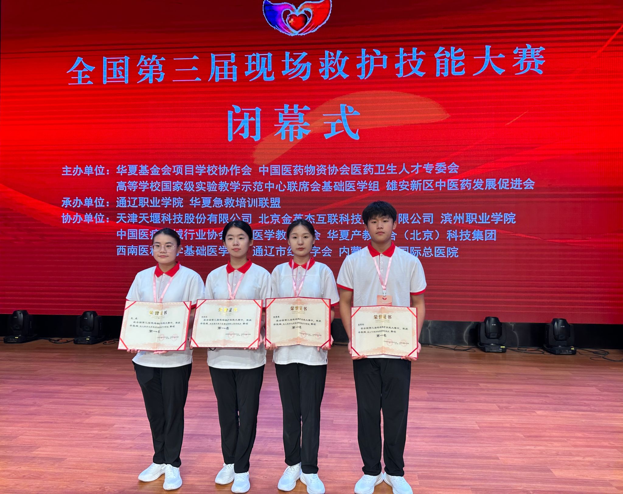 近日,beat365在中国医药物资协会医药卫生人才专委会、高等学校国家级实验教学示范中心联席会基础医学组等单位联合主办的“全国第三届现场救护技能大赛”中喜获佳绩。beat365赵聪聪和赵婕同学荣获非医学组双人徒手心肺复苏现场救护与管理赛项第一名,张梓楠同学荣获非医学组成人气道异物梗阻现场救护赛项第一名,田梁烁同学荣获非医学组突发意外单个危重创伤病人现场救护赛项第一名,孙丽娜老师和杨丽娟老师分别荣获团体第一名优秀指导教师,学校荣获非医学组团体第一名。