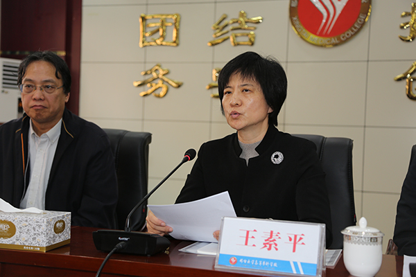 市委副书记王素平在讲话中表示,市委坚决拥护省委对邢台医专班子的调整,将继续关心和支持邢台医专的发展和干部队伍建设。希望邢台医专领导班子把维护团结作为推动工作发展的重要条件、作为凝聚力量的关键因素,在工作中相互学习,加强沟通,互相补台,团结带领邢台医专干部群众凝心聚力,干事创业,推动各项工作迈上新台阶,不辜负省委的信任和重托,不辜负广大干部群众的殷切期望。她代表市委向大家提出四点要求:一要旗帜鲜明讲政治,二要统一思想聚合力,三要推动工作上台阶,四要助力邢台大发展。她希望邢台医专要认真贯彻党的教育方针,适应新时代经济社会矛盾转化需要,立足学校实际,切实担负起应有的责任,提高办学层次、水平和综合实力,培养德才兼备的医疗卫生人才,在邢台市大健康产业中发挥“龙头”作用,为建设经济强市、美丽邢台做出新的更大贡献。