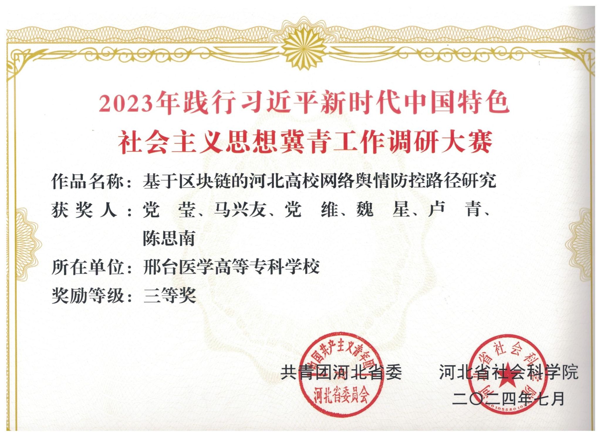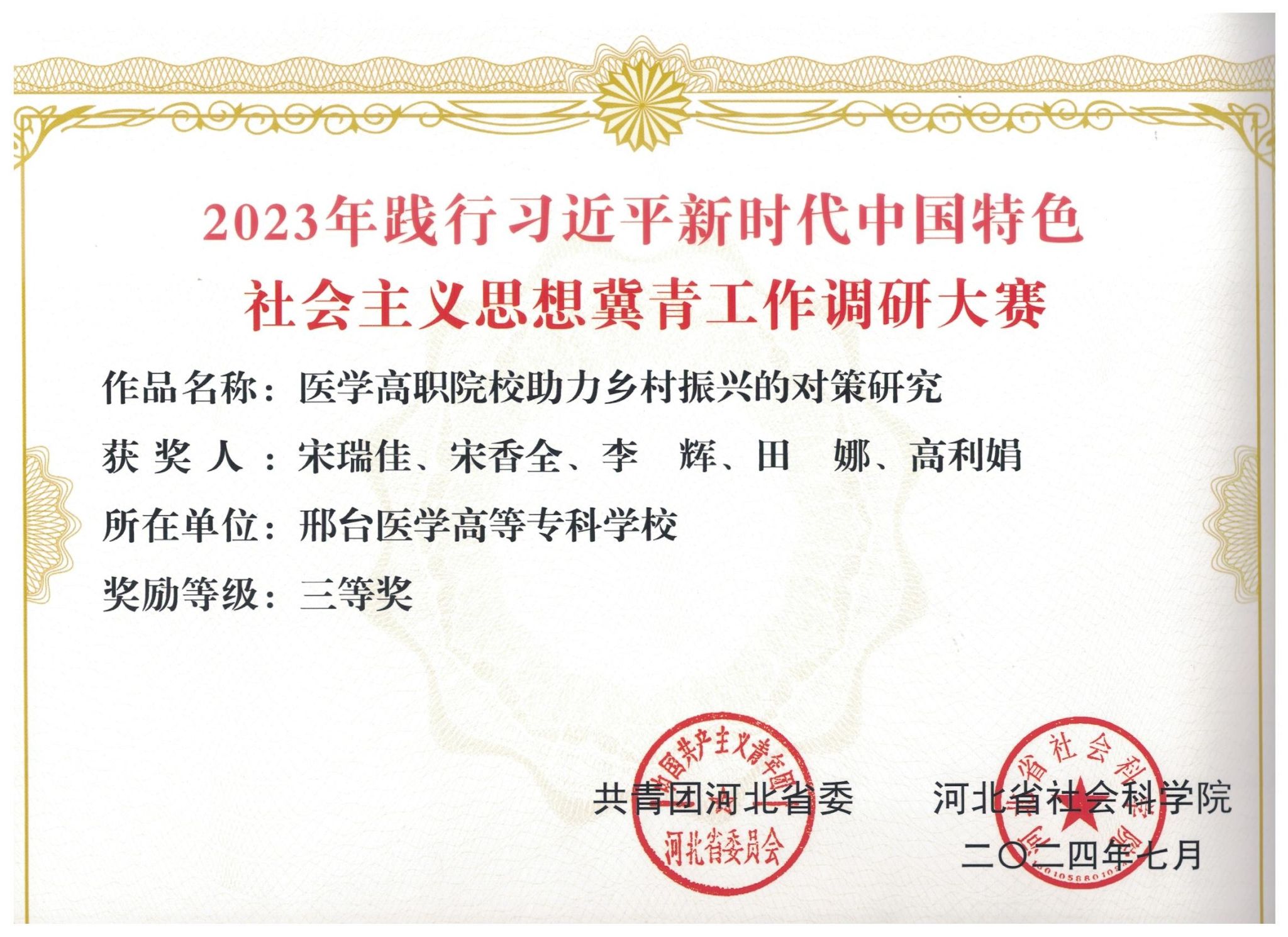 近日,由共青团河北省委、河北省社会科学院联合主办的2023年践行习近平新时代中国特色社会主义思想冀青工作调研大赛获奖名单揭晓。beat365共3项作品获奖,其中二等奖1项,三等奖2项。