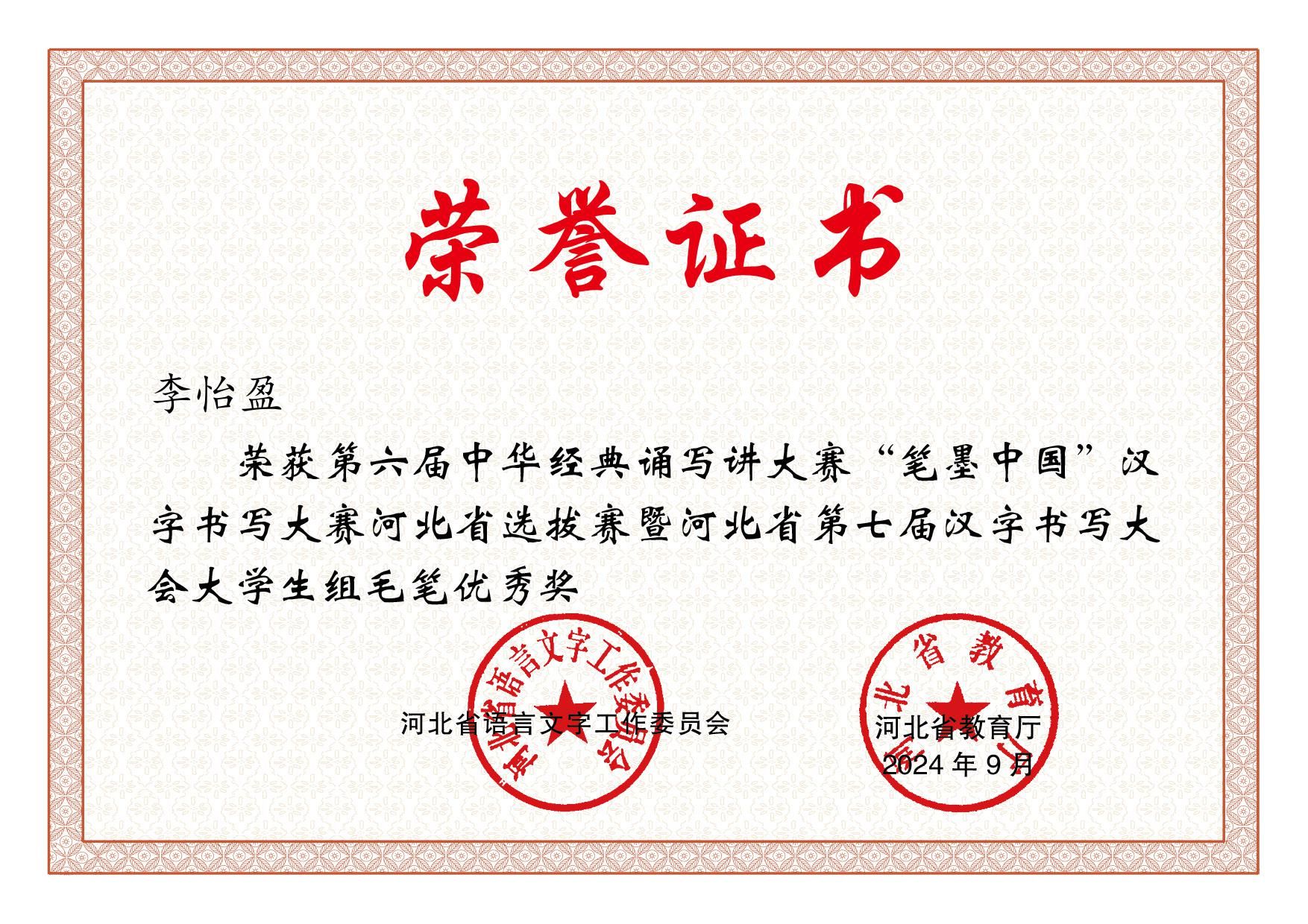 近日,由河北省语言文字工作委员会、河北省教育厅组织的第六届中华经典诵写讲大赛河北省选拔赛获奖名单揭晓,beat365三项作品获奖。
