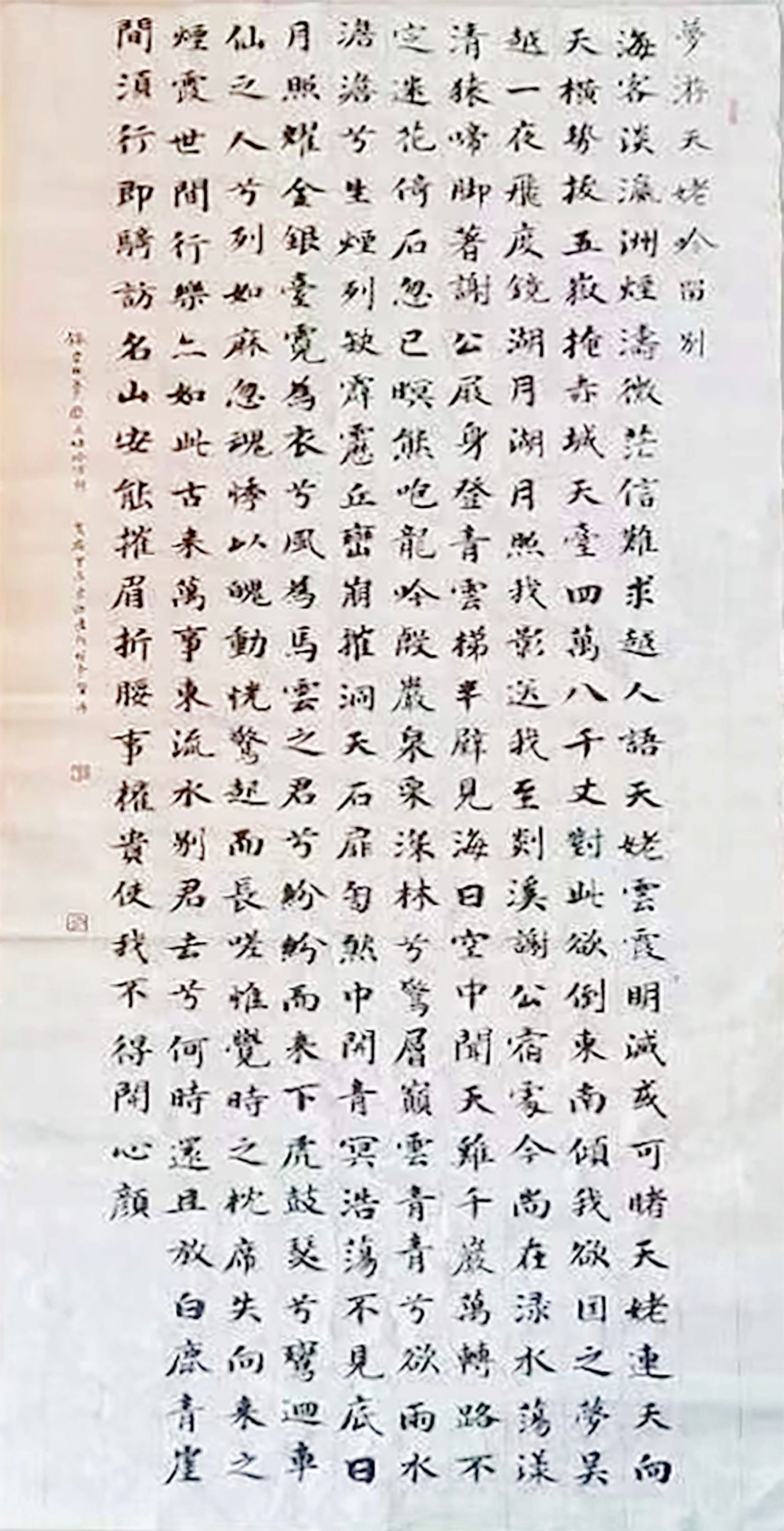 中医系李怡盈同学软笔书法作品《梦游天姥吟留别》荣获学生组优秀奖。