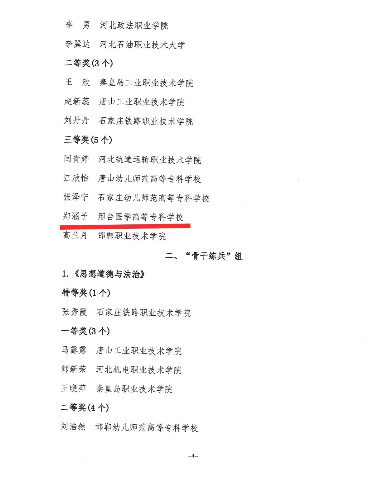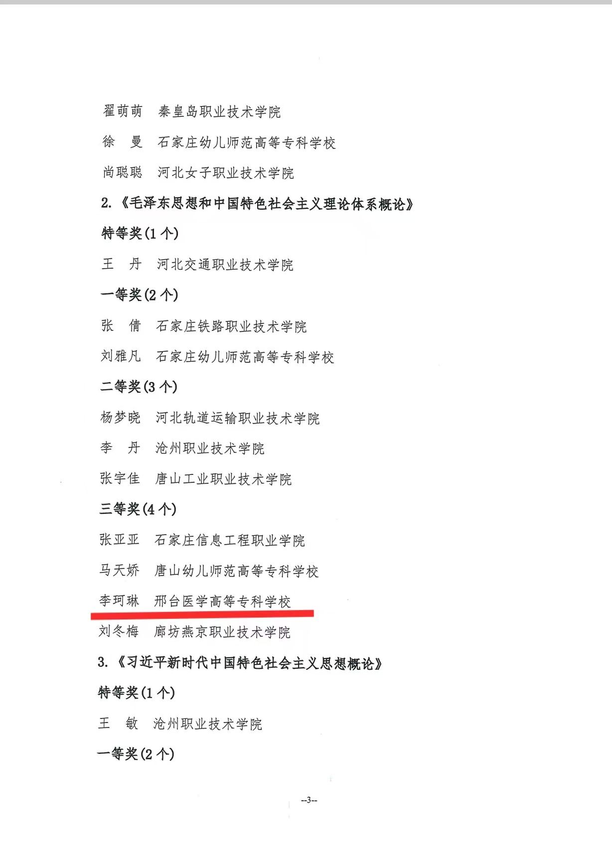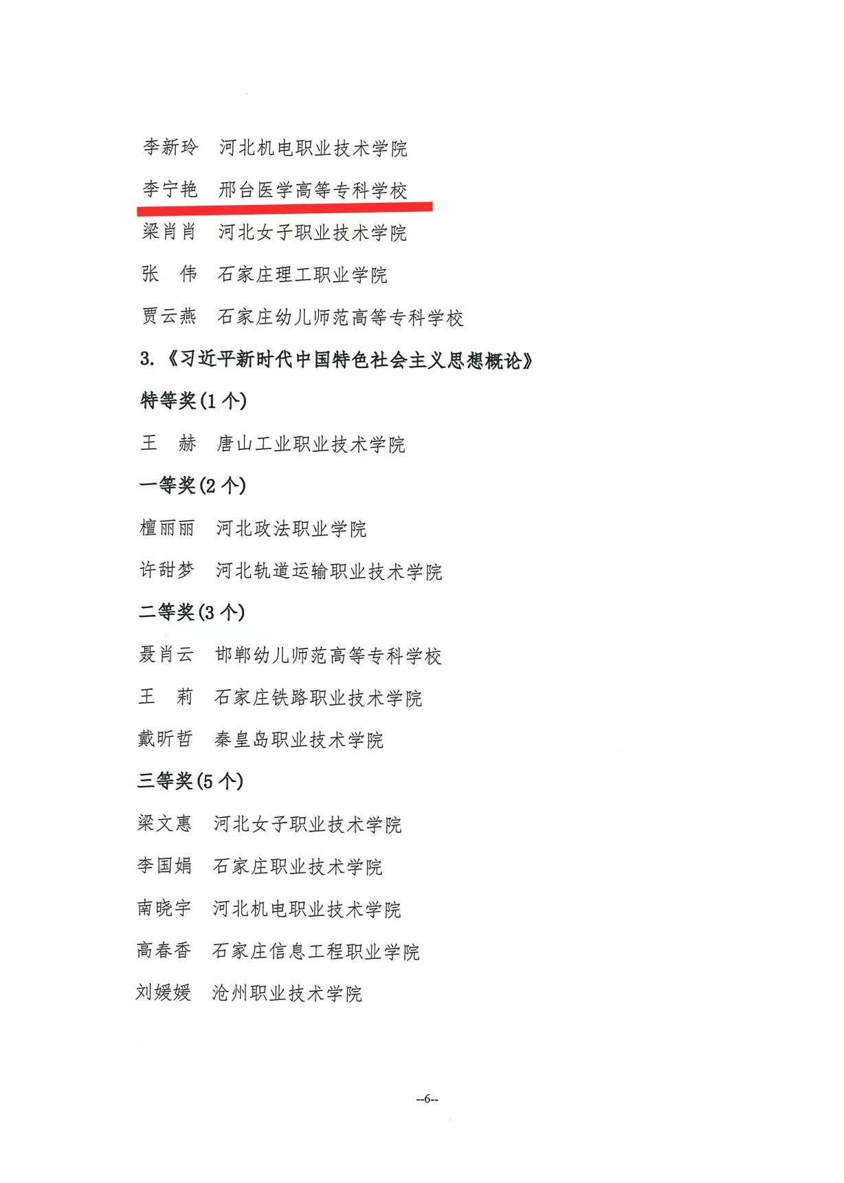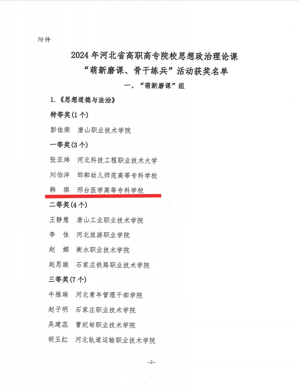 近日,由河北省教育厅指导、河北省高职高专思想政治理论课建设联盟主办的2024年河北省高职高专院校思想政治理论课“萌新磨课、骨干练兵”活动获奖名单公布,beat365马克思主义学院4名教师喜获佳绩。