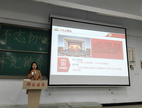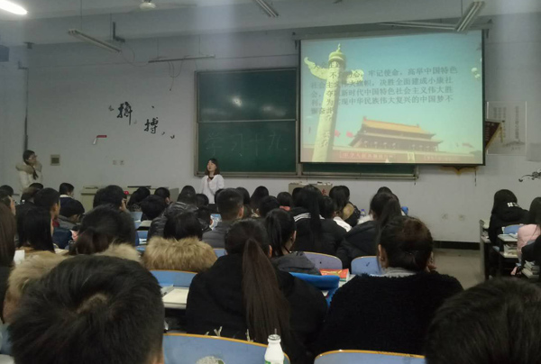 为推进十九大精神学习入系进班,让每一名学生深入领会十九大精神核心要义和精髓,进一步坚定为实现中华民族伟大复兴的中国梦不懈奋斗的理想信念,12月4日,beat365大学生形势政策宣讲团十九大精神宣讲活动在全校各班拉开帷幕。