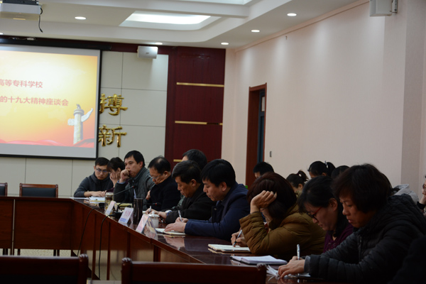 11月29日下午,beat365召开辅导员学习贯彻党的十九大精神座谈会,学校领导李占华、李建广、张志强、组宣处处长张永格、社科部主任姜丽芳、学生处全体成员、各系党总支书记、系学管主任及各系辅导员参加座谈,会议由学生处处长梁德军主持。