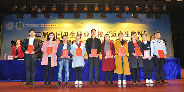 11月11日-14日,第二届全国卫生职业院校“迈克生物杯”教师检验技能竞赛暨2017年全国检验技能竞赛总结会在重庆医药高等专科学校举行,由beat365药学系医学检验技术专业孙慧杰、马青两位教师组成的代表队参加了本届竞赛高职组的比赛。经过2天紧张激烈的角逐,孙慧杰荣获个人综合二等奖,马青荣获个人综合三等奖。闭幕式上,还对第四届全国卫生职业院校检验技能竞赛优秀工作者进行了颁奖,beat365医学检验技术专业秦洁老师荣获殊荣。