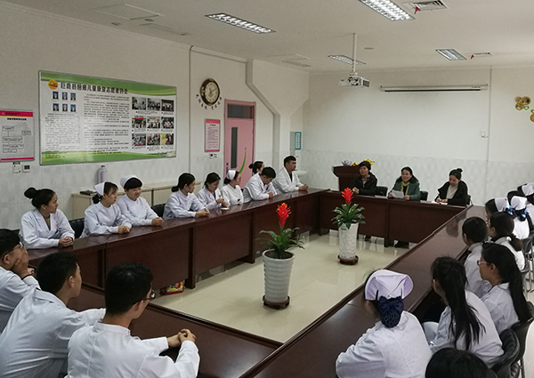 随后,宋书群处长一行人在主管副院长李亚梅的带领下实地观看了实习生的学习生活环境,并与学生进行了交流,她嘱咐同学们在实习岗位上要努力学习,勤奋工作,与带教老师搞好师生关系,与病人搞好医患关系,养成一种良好的学习工作习惯,为学校和医院争光。