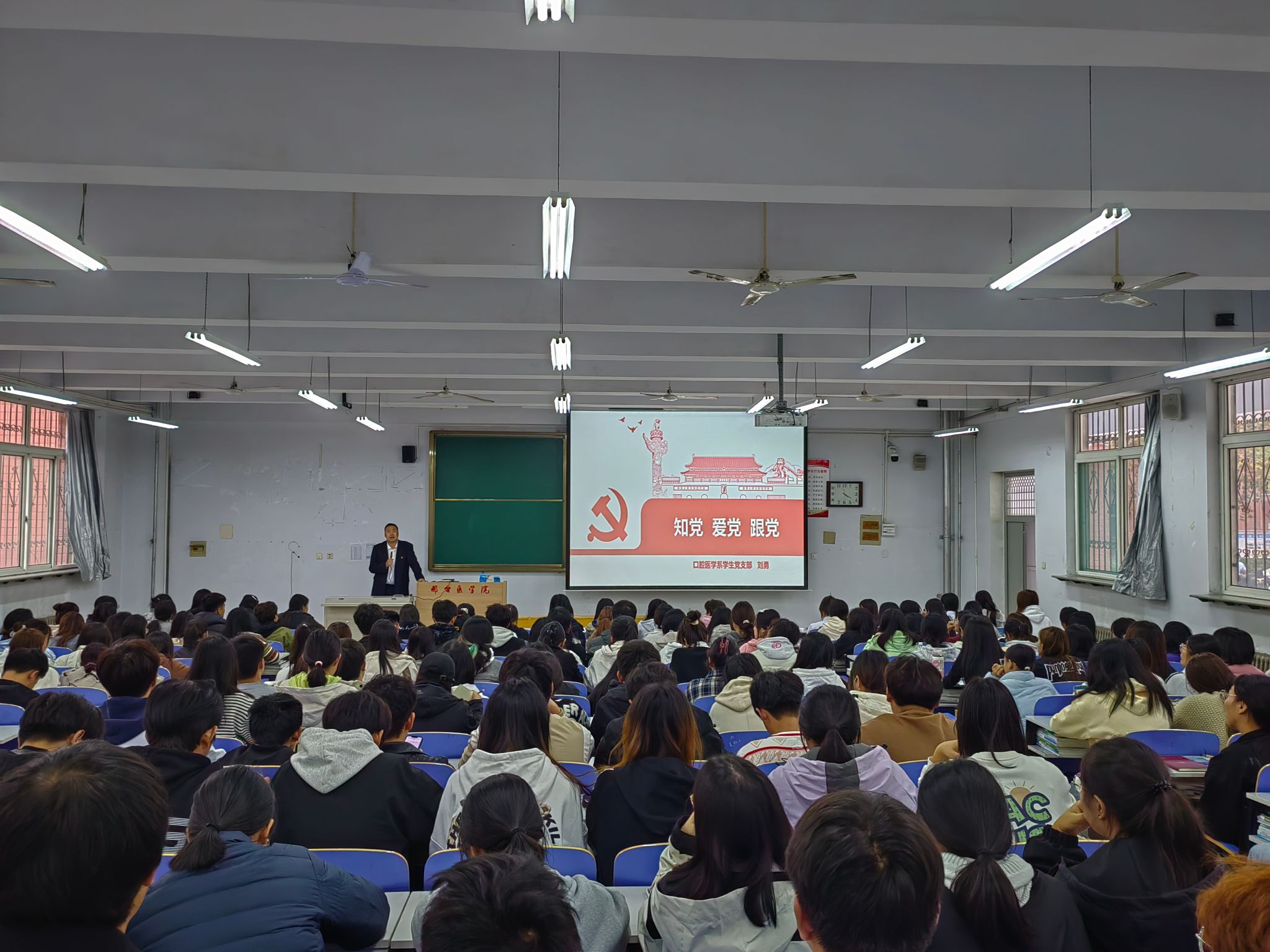 为提升入党积极分子对党的认识,强化党的理论知识学习,引导大学生入党积极分子坚定理想信念,端正入党动机,深入学习习近平新时代中国特色社会主义思想,10月30日,口腔医学系党总支举办了2024年入党积极分子培训班开班仪式。系党总支负责人耿建春、副主任王军波、党总支专职组织员卢青以及全体辅导员出席开班仪式,190余名入党积极分子参加。仪式由学生党支部书记刘勇主持。